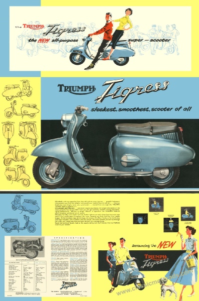 Sleek, smooth and Made in England, this poster was reproduced from the 1958 Triumph Tigress brochure and measures 51cm x 77cm plus white border and is printed on top quality archival 230gsm matte paper Lightfast and ideal for framing archival 230gsm matte paper Lightfast and ideal for framing. £10.95 + p&p Click here to buy